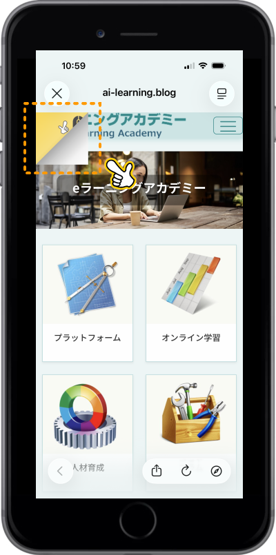 パソコンだけではありません。Blog Auto AI専用機能拡張モジュール「MEKURERU」は、ページの上部(右のみ・左のみ)に小さめのめくれバナーを設置できます。スマホの場合、マウスオーバーができないので、タップしてリンク先が開く流れになります。